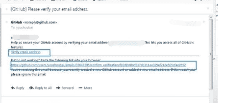 进入邮箱找到github发送的验证邮件,打开后如下图所示,点击框中所示任意一个链接即可验证并跳回到注册完成后的页面。再重新点击start a project,开启第一个版本库。