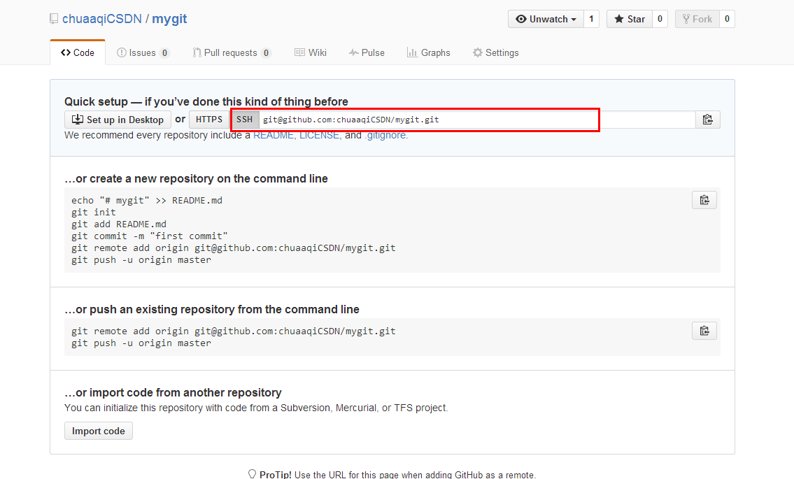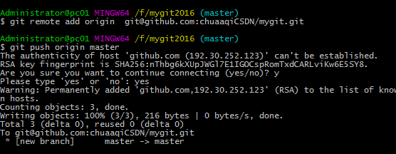 $ git remote add origin git@github.com:chuaaqiCSDN/mygit.git