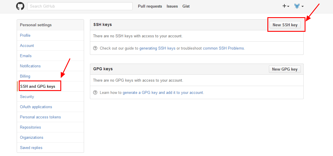 其中Title中的名称可以任意填写,将C:\Users\Administrator\.ssh目录下id_rsa.pub复制的所有内容粘贴到Key中,点击Add SSH Key,SSH密钥完成