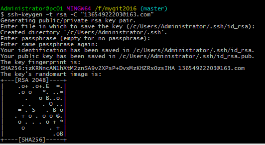 $ ssh-keygen -t rsa -C "13654922203@163.com"