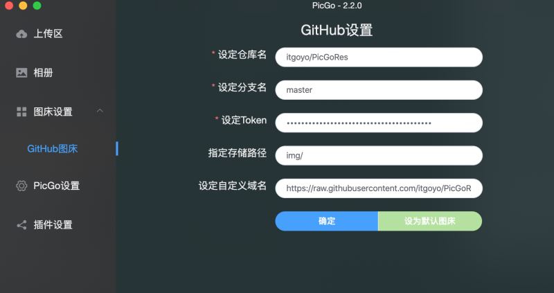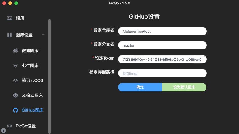 分支即可。然后记得点击确定以生效,然后可以点击设为默认图床