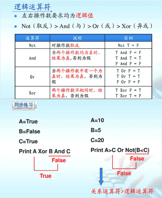 VBScript 有一套完整的运算符,包括算术运算符、比较运算符、连接运算符和逻辑运算符。 运算符优先级: