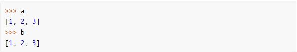 您将再次看到我们刚刚创建的新列表看起来与a和b指向的list对象相同: