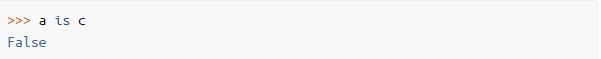 好吧,我希望这是您所期待的,这个结果告诉我们c和a有相同的内容,它们被Python认为是相等的,但它们是否指向同一个对象?我们来看看is操作符: