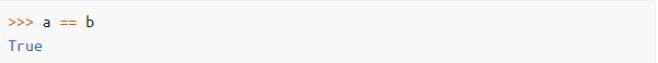 因为两个列表对象看起来相同,所以当我们使用“==”运算符比较它们的相等性时,我们会得到预期的结果: