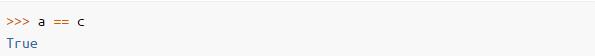 这就是有趣的地方,如果我们使用“==”运算符来比较列表副本c和初始化列表a,您希望看到什么答案?