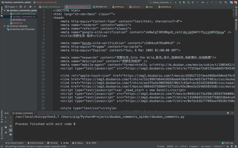 上图中我们可以看到爬取返回的是html,而影评数据便是嵌套在html标签中,如何提取影评内容呢?