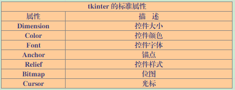 tkinter 的标准属性是所有控件的共同属性,如下表所示:
