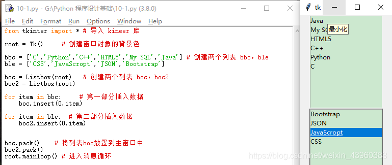 注意: tkinter 的首字母是小写;