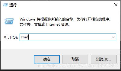 win + R(或开始“菜单”>运行>输入cmd),输入cmd,打开 命令行窗口;