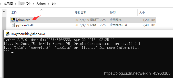 打开 Jython 的安装目录的 bin 目录,运行 jython 程序