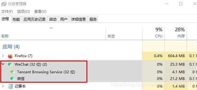 只是运行了一个WeChat(32位)的进程而已。(如下图)