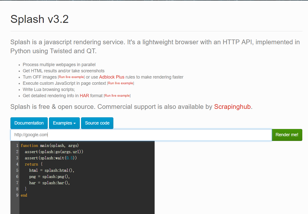 更多内容请查看官方文档:http://splash.readthedocs.io/en/stable/