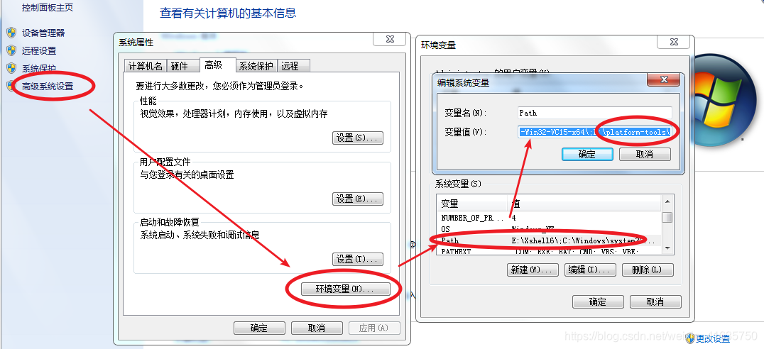 将解压后的目录,有adb.exe的目录路径添加到系统环境变量中