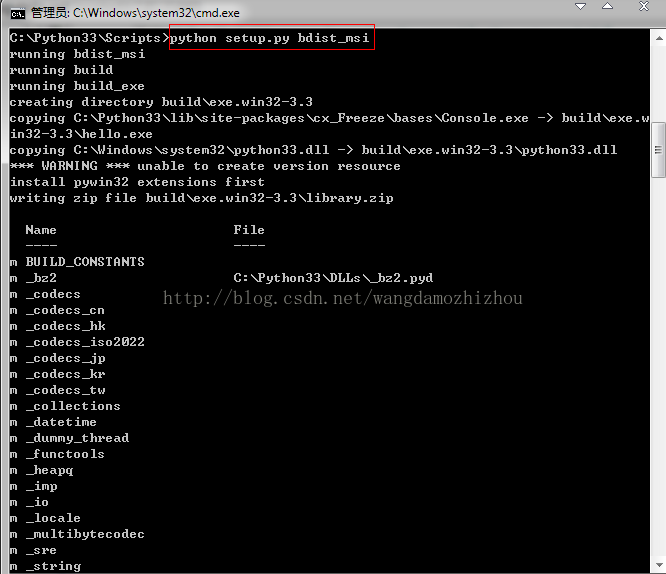 执行成功之后,将在”C:\Python33\Scripts“目录下生成build和dist两个文件。