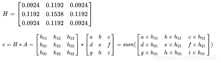 高斯滤波最重要的还是卷积核核,通常使用高斯平滑滤波器卷积降噪,这里以size=3的高斯内核为例:这里做了归一化处理(元素和为 1)