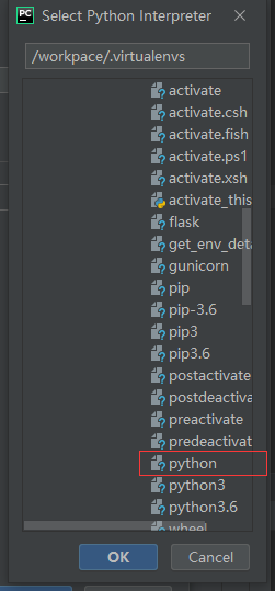 4. 点击next 选择远程的解释器安装python的bin目录下的python 也可以用虚拟目录的解释器