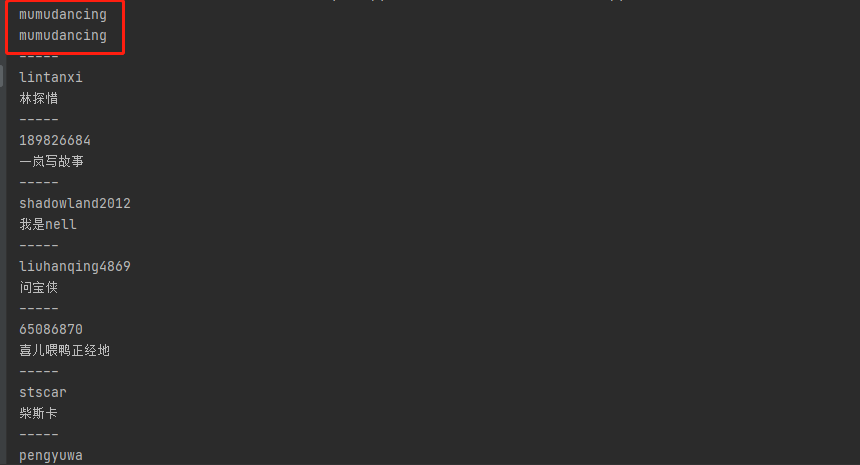 url中start参数是页数(page*20,每一页20条数据),因此start=0、20、40...,也就是20的倍数,通过改变start参数值就可以获取这4614条用户的名称。