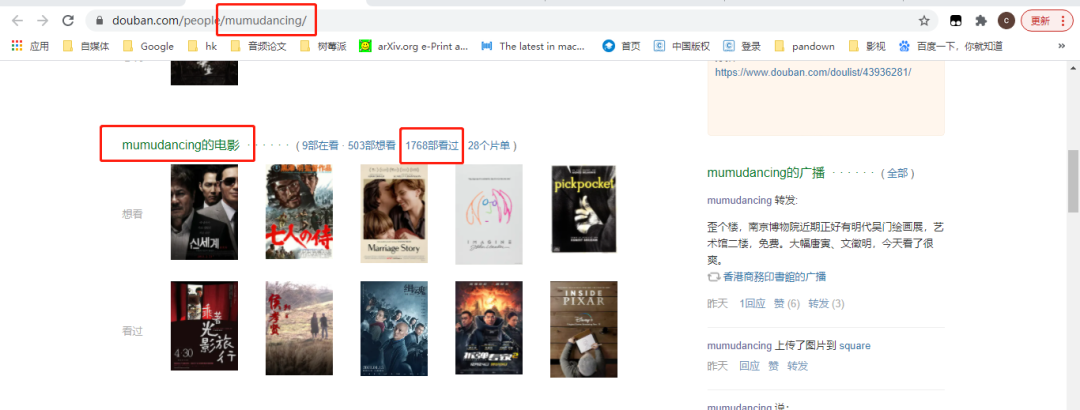 url = "https://movie.douban.com/people/mumudancing/collect?start=15sort=timerating=allfilter=allmode=grid"