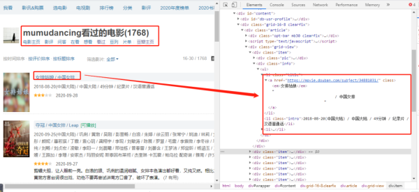上一步爬取到『用户名称』,接着爬取用户观影记录需要用到『用户名称』。