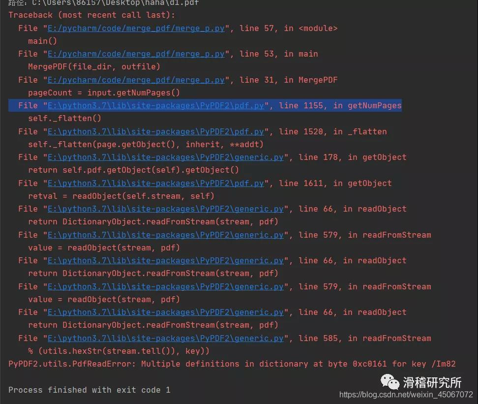 PyPDF2。utils.PdfReadError:对于键/Im82,字典中字节0xc0161处有多个定义