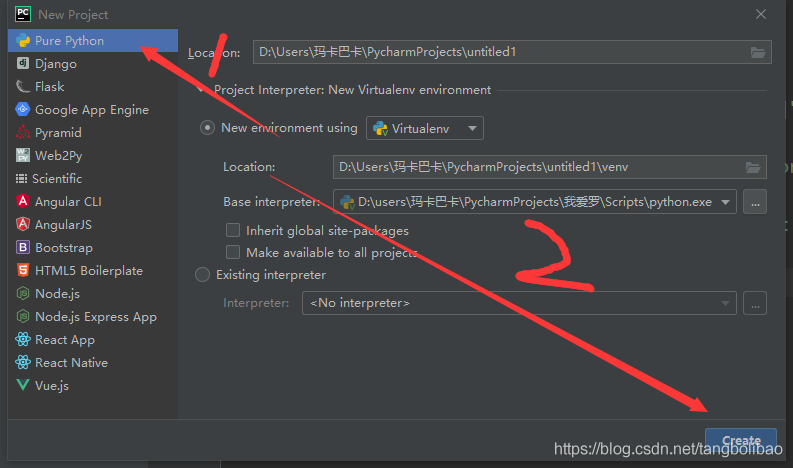 第一步,通过pycharm创建一个项目