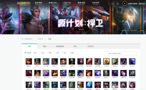 1.先去《英雄联盟》官网找到英雄及皮肤图片的网址: