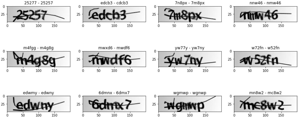 ax[count//4][count%4].title.set_text(pred + ' - ' + actual)