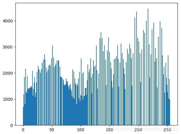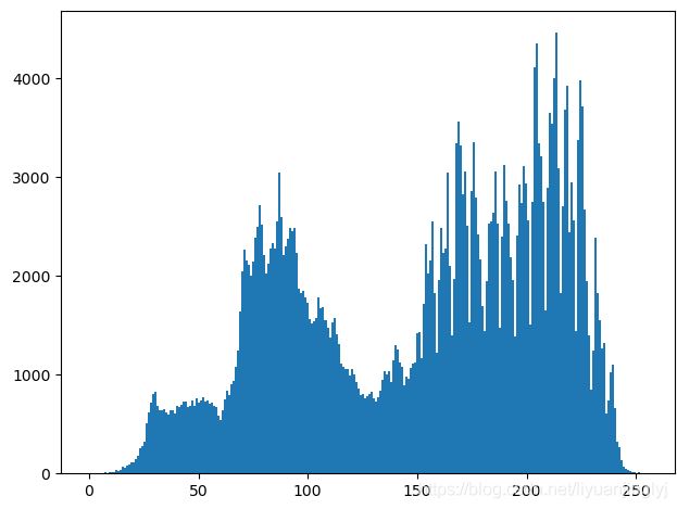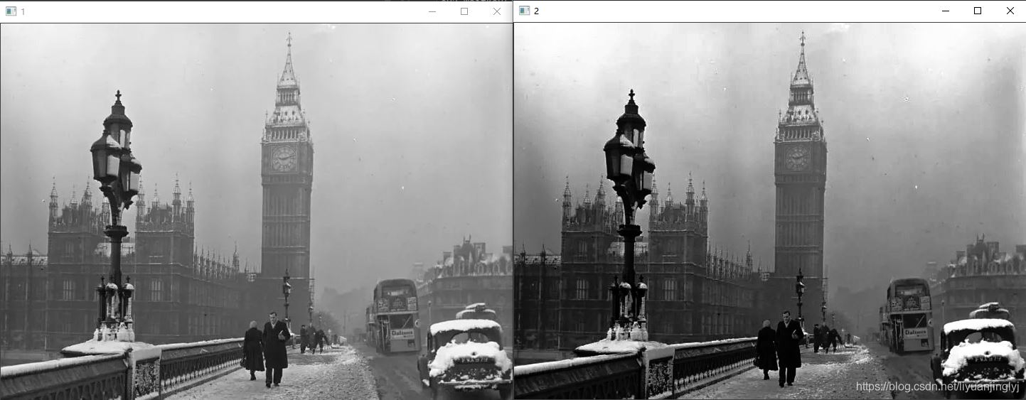 下面,我们来通过该函数实现灰度图像直方图均衡化处理,代码如下:
