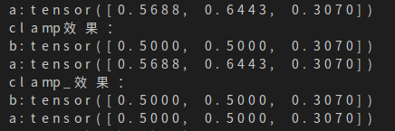 结果为如下图,可见张量a在调用clamp_函数后其本身的值也会发生改变,但是调用clamp的时候则只会返回一个修改后的副本。