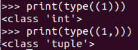 ‘(1)'这种写法得到的是一个int类型的数据,而‘(1, )'得到的是一个turple类型的数据。验证如下: