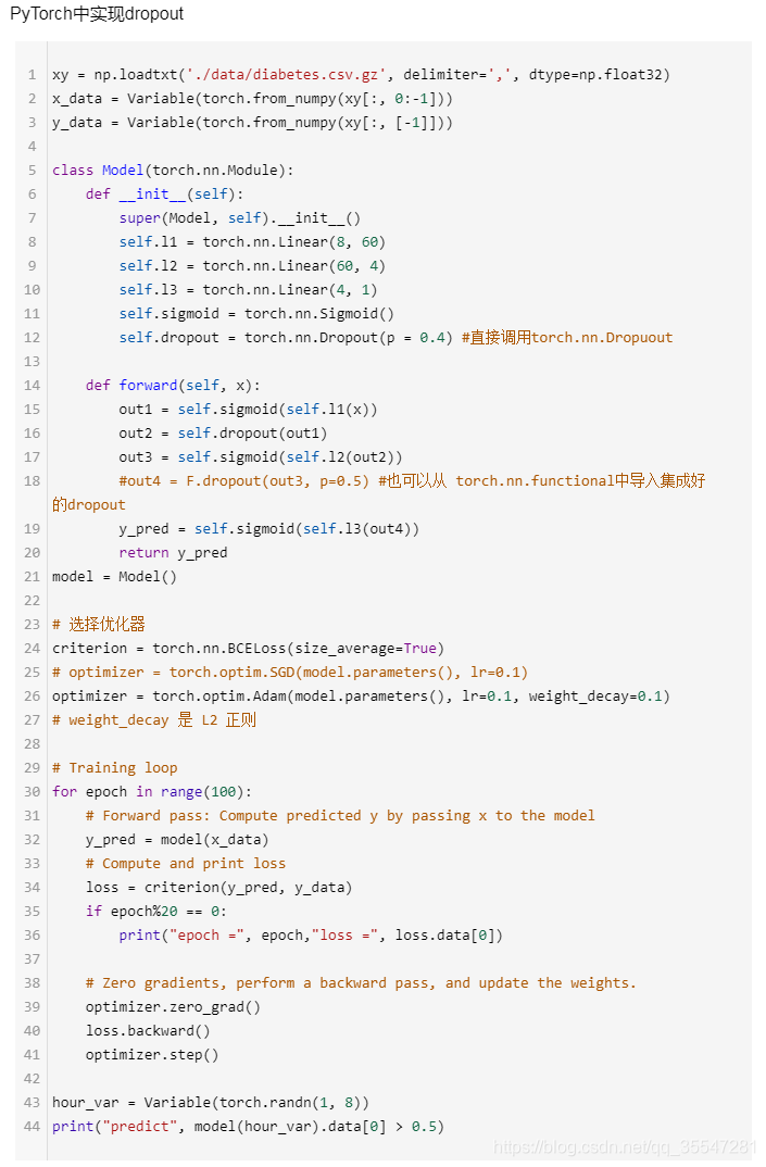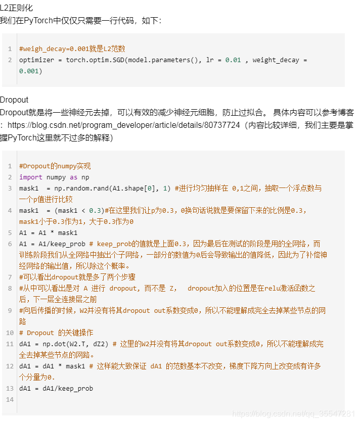 补充:PyTorch1.0实现L1,L2正则化以及Dropout (附dropout原理的python实现以及改进)