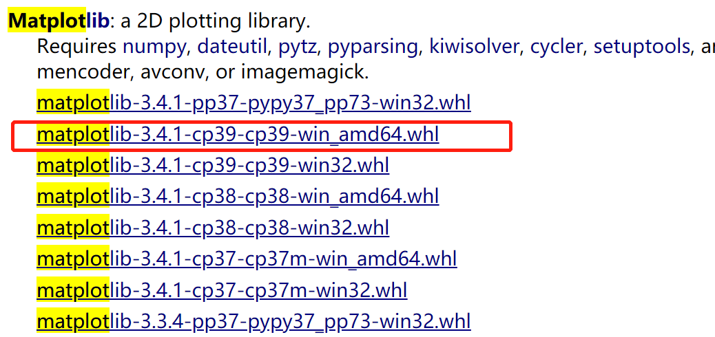pip install matplotlib‑3.4.1‑cp39‑cp39‑win_amd64.whl