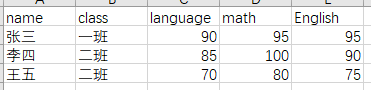 这里是关于学生语数英成绩的统计表,文件名为score.xls