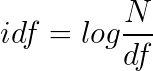 为了获得出现词项T的所有的文档的数目,我们需要引进一个文档频率df。由于df一般都比较大,为了便于计算,需要把它映射成一个较小的范围。我们假设一个文档集里的所有的文档的数目是N,而词项的逆文档频率(IDF)。计算的表达式如下所示: