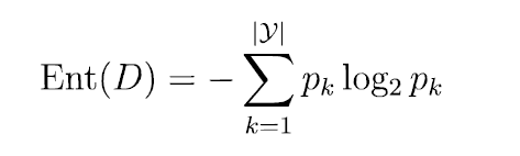 Ent(x)函数是计算信息熵,表示的是样本集合的纯度信息,信息熵的计算方法如下: