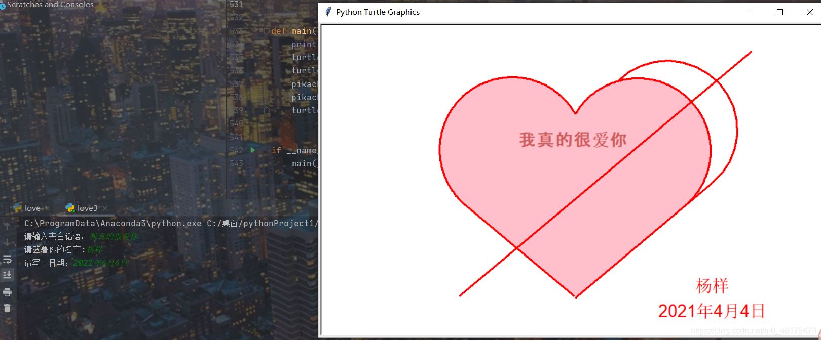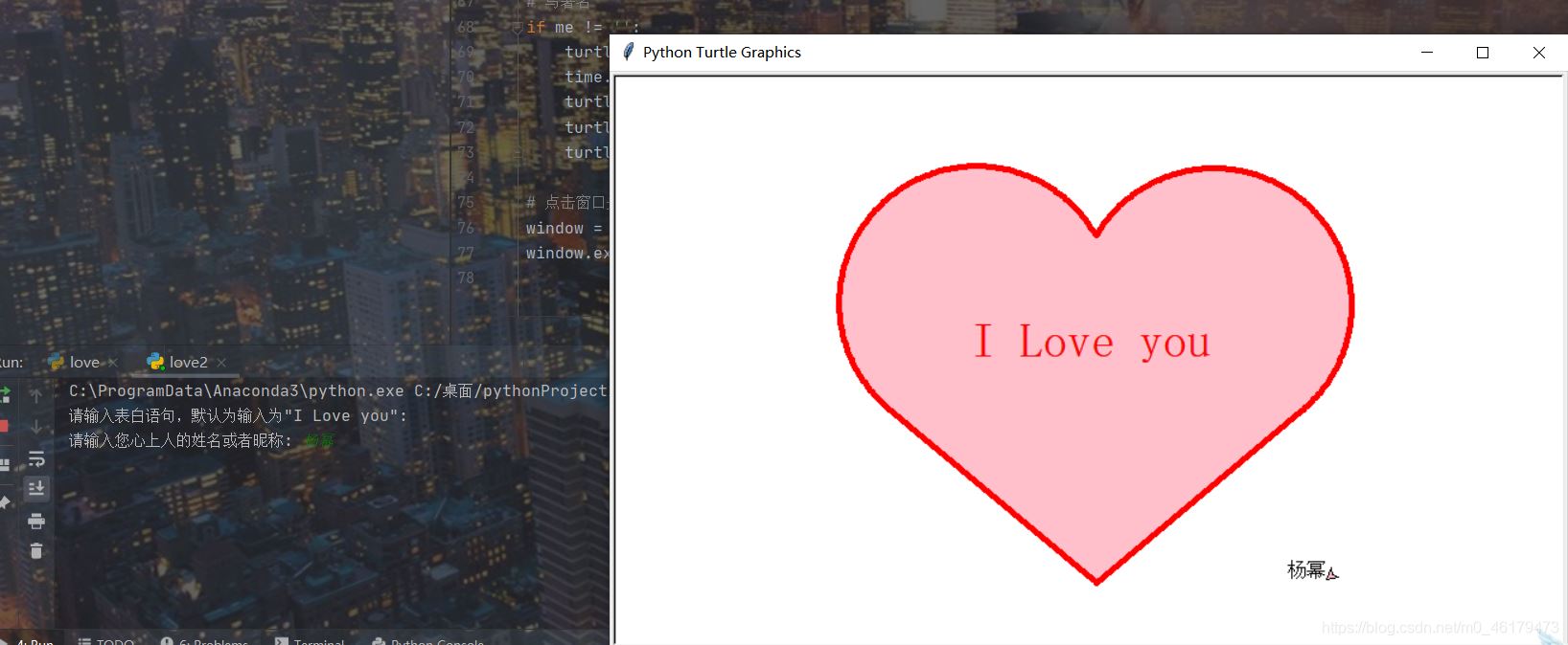 love = input('请输入表白语句,默认为输入为"I Love you": ')