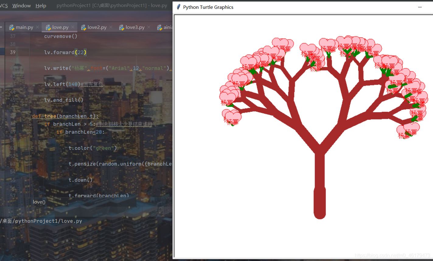 巨人网络通讯声明:本文标题《Python绘制的爱心树与表白代码(完整代码)》,本文关键词  Python,绘制,的,爱心,树,与,;如发现本文内容存在版权问题,烦请提供相关信息告之我们,我们将及时沟通与处理。本站内容系统采集于网络,涉及言论、版权与本站无关。