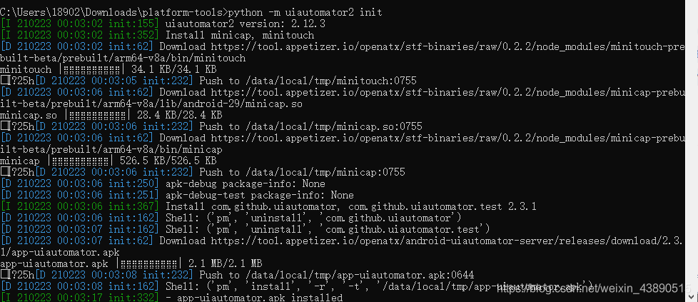 这个步骤其实就是在我们的手机上安装apk。记住要去手机操作同意安装