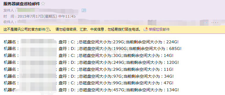 $diskFree=";总磁盘空间大小为:"+[math]::truncate($total).ToString()+"G;当前剩余空间大小为:"+[math]::truncate($counter).ToString()+"G!"