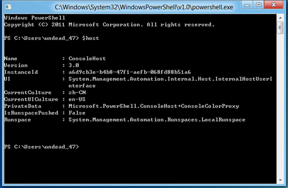 如同PowerShell 2.0内置于Windows 7和 Windows Server 2008 R2,在Build大会上发布的Windows 8 Developer Preview 和 Windows Server 8 Developer Preview也内置了PowerShell 3.0。我安装的Windows 8 Developer Preview x64,快捷键Win + R 打开运行,输入powershell即可打开PowerShell 3.0的命令行: