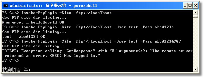 主页 > 知识库 > PowerShell脚本开发之尝试登录ftp