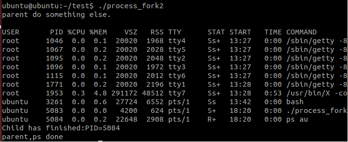 //int code = system("ps au");//system函数立即返回