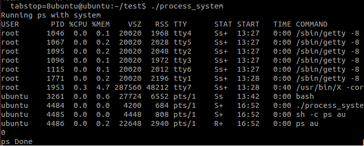 printf("Running ps with system\n");