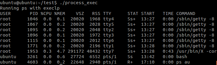 execlp("ps","ps","au",0);