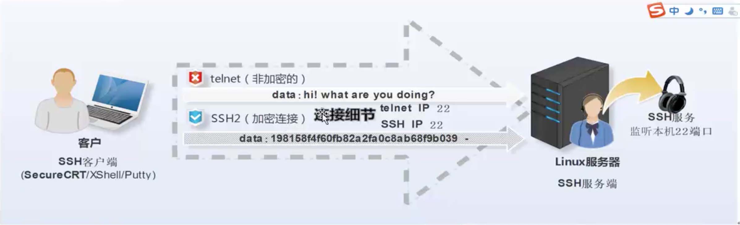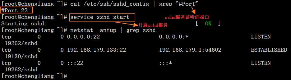 服务器端===>通过ssh协议提供===>守护进程sshd监听22端口(不断的监听是否有人需要服务)