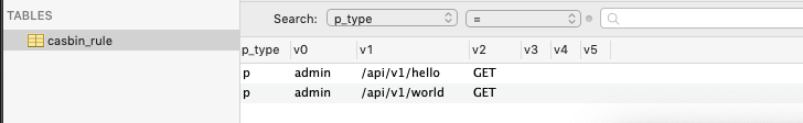 在使用Casbin中间件时,会访问表中的数据库表 ,得到相应的权限信息,增加访问信息后,访问接口成功