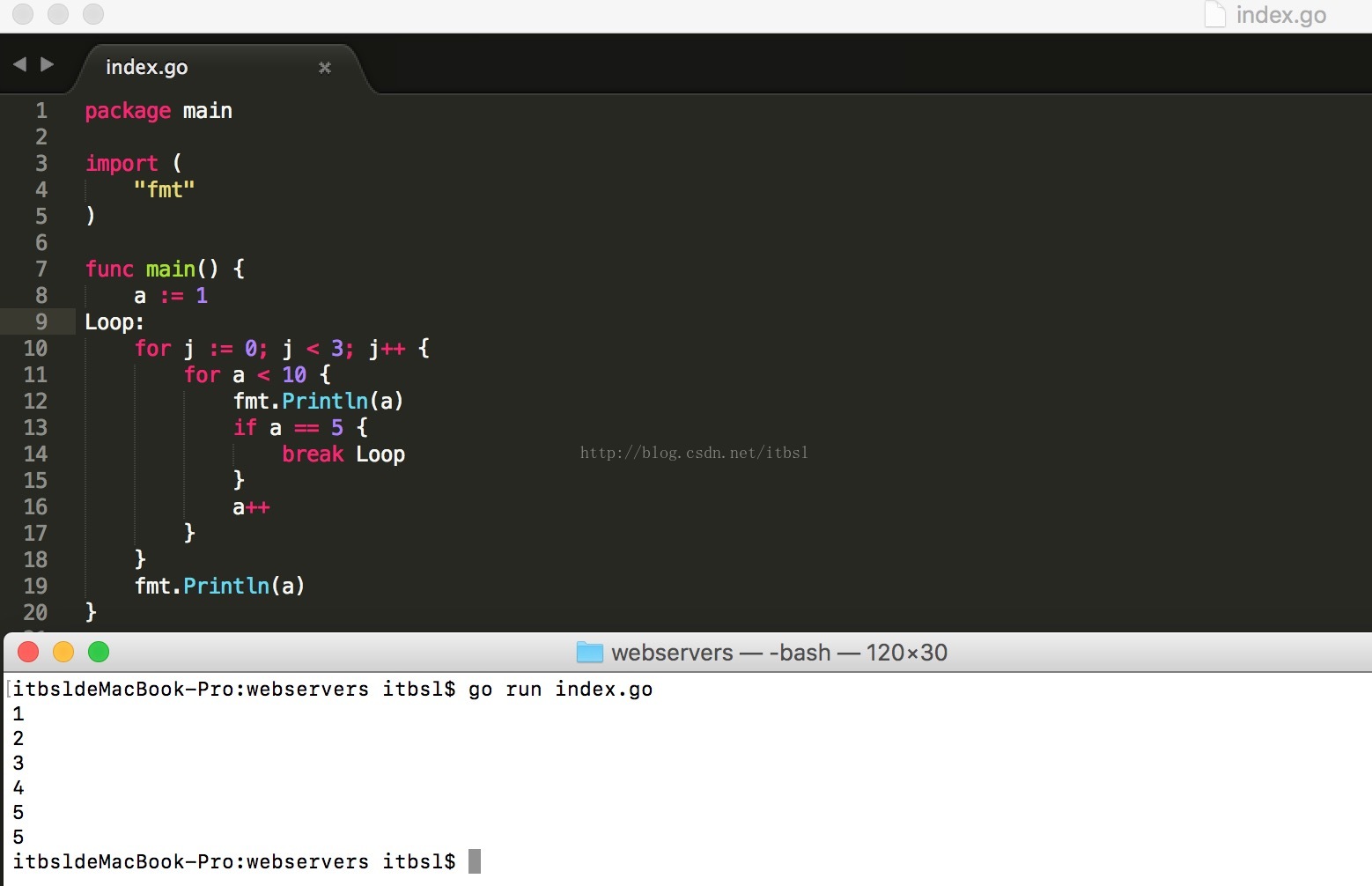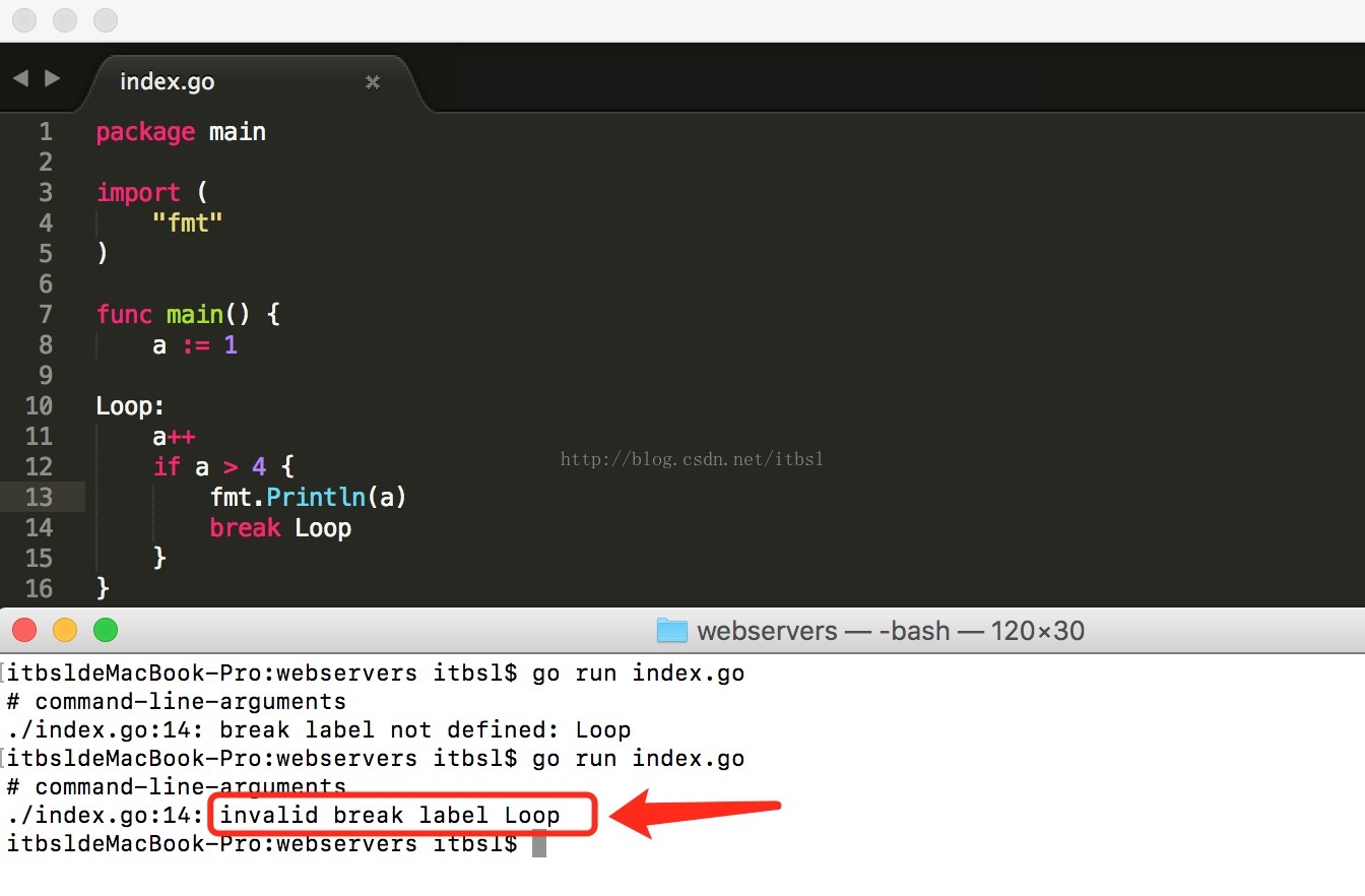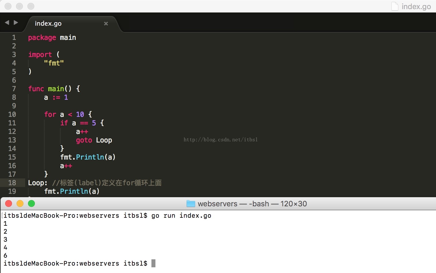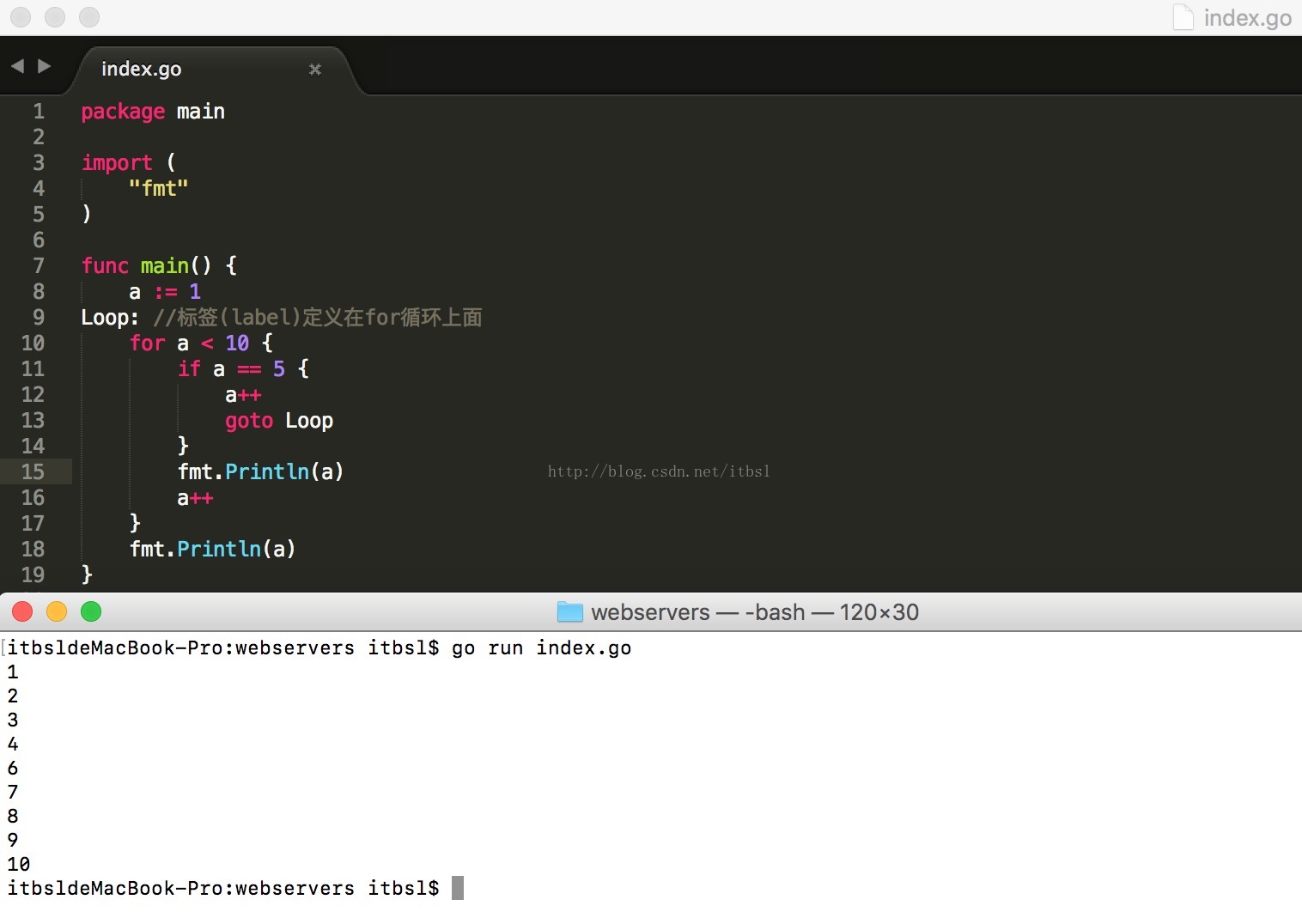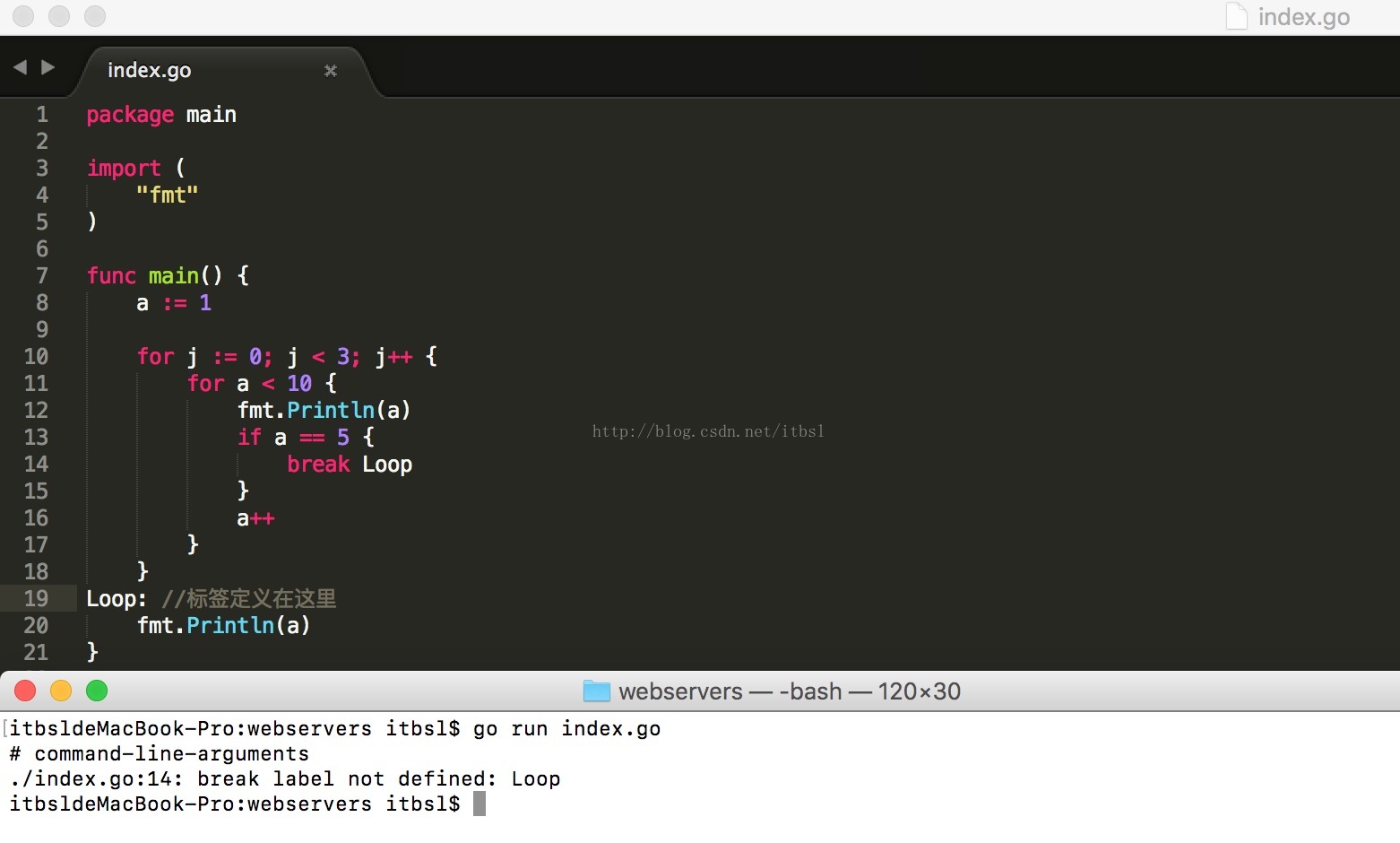 而goto label的label(标签)既可以定义在for循环前面,也可以定义在for循环后面,当跳转到标签地方时,继续执行标签下面的代码。