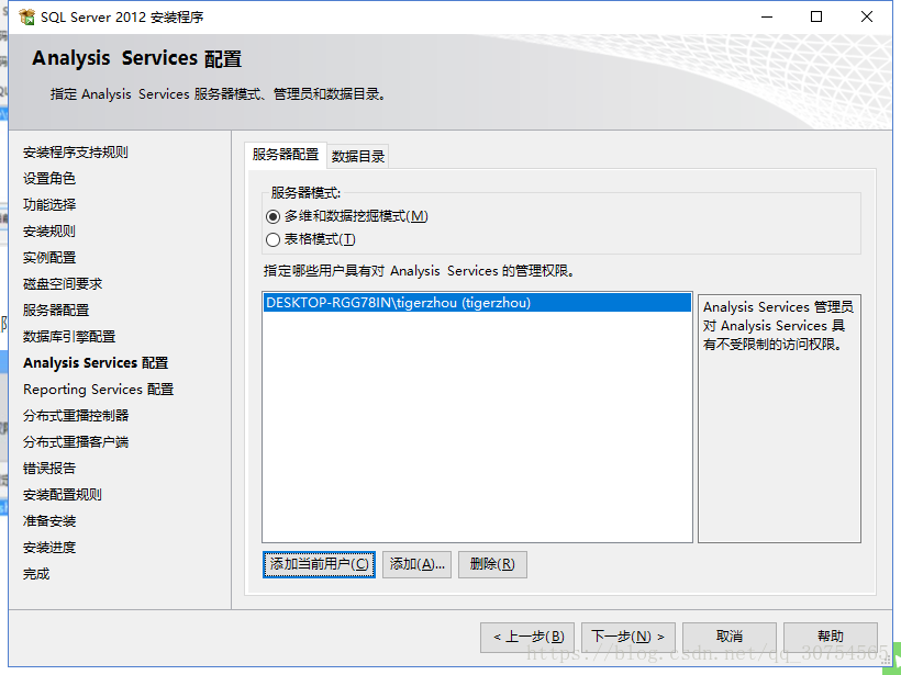 到这一步的时候继续添加当前用户,点击下一步
