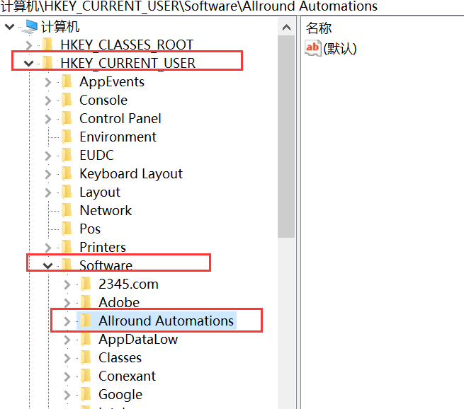 3.然后,在注册表里按HKEY_CURRENT_USER\Software\Allround Automations 这个路径找到“Allround Automations ”,然后删除它。
